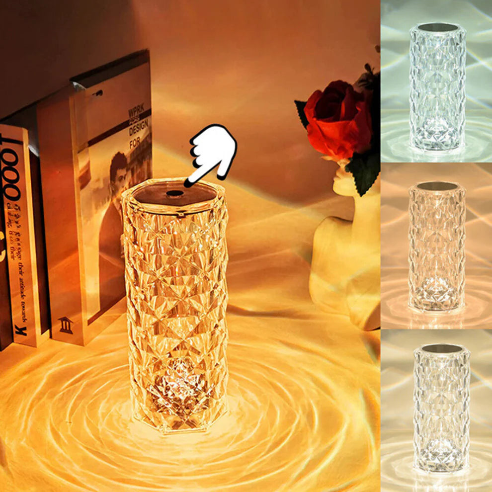 Dale un toque sofisticado y acogedor a tu hogar con la Lámpara Destellos de Diamante. Su diseño en acrílico con efecto de luz en forma de diamante la convierte en el complemento perfecto para cualquier habitación. Con tres niveles de brillo ajustables y batería recargable, es ideal para crear el ambiente perfecto en cualquier momento.